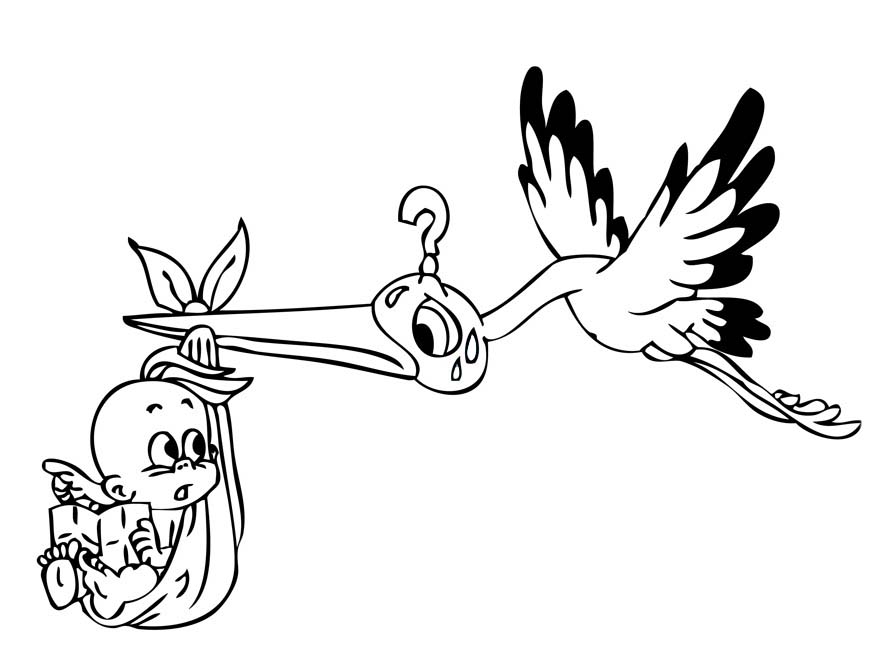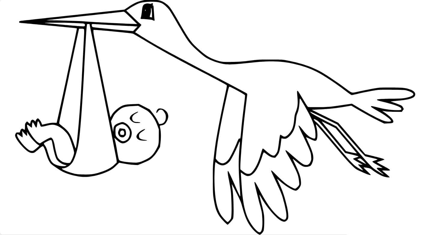 Teken ooievaar met baby gratis voor kinderen